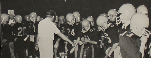 Cyclone players present the Central game ball to Rev. Harold Maines. This was the last year that Rev. Maines served as team chaplain.